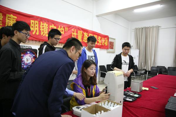 5月22日下午,萍乡市天元技工学校校园内气氛活跃,同学们有的在等候检测眼镜,有的在等待视力检查,还有的一群群围着技术专家咨询配镜知识。这是萍乡市计量测试院为庆祝第十九个“5.20世界计量日”,按照市质监局组织的“计量为民服务周”活动要求,结合“明镜守护工程”开展的“计量进校园”活动。活动内容包含“5.20世界计量日”主题宣传、为在校师生提供眼镜免费检修和验光服务、科普用眼护眼和配镜知识等项目。